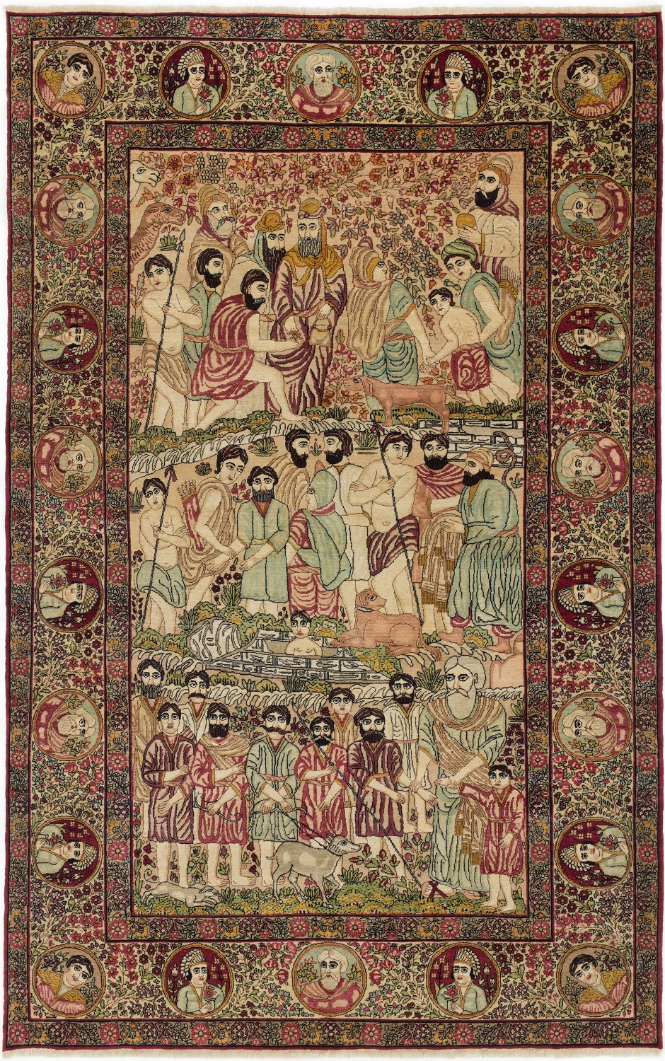 古くから経済・商業の中心地であったタブリーズでは、美しいながらも上質なウールやシルク&ウール素材を使い、堅牢で耐久性に優れた“経済的な絨毯”として人気を集めています。代表的なデザインは、マヒ柄とフラワー柄(ナクシャ)、女神などです。タペストリーにおいては、花瓶、花かご、馬、犬、猫など絵画のデザインが多く、17世紀以降、最も主要な絨毯生産地としての位置付けは今も揺るぎがありません。